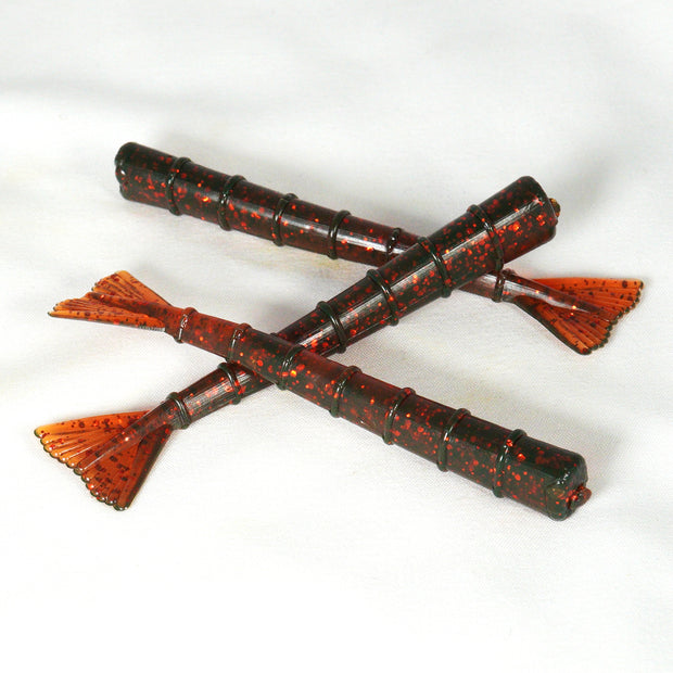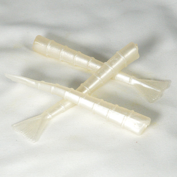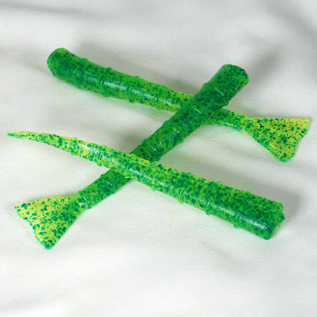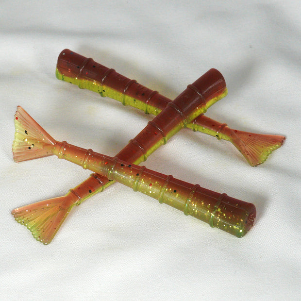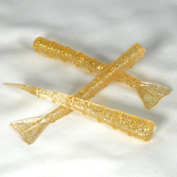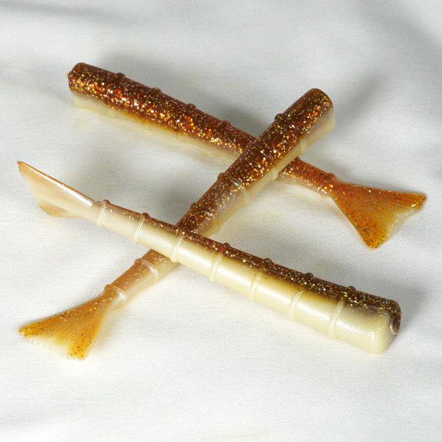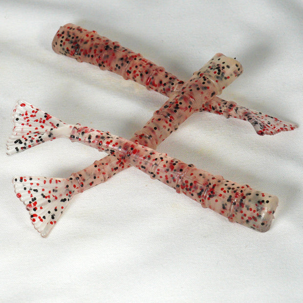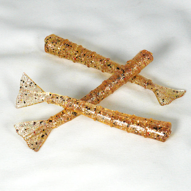 6 pack. The original design that goes back well over 40 years. This bait is 4-inches long, has a ribbed body with a flat shrimp like tail. Designed to bounce along the bottom for flounder and reds or perfect for working it under a popping cork for speckled trout. This old school lure still flat out catches fish!
