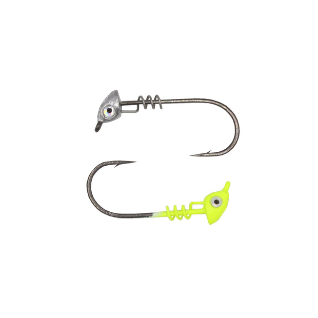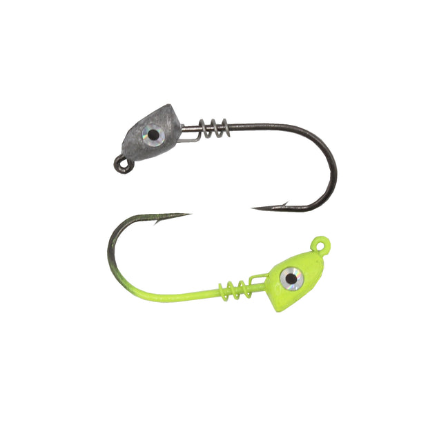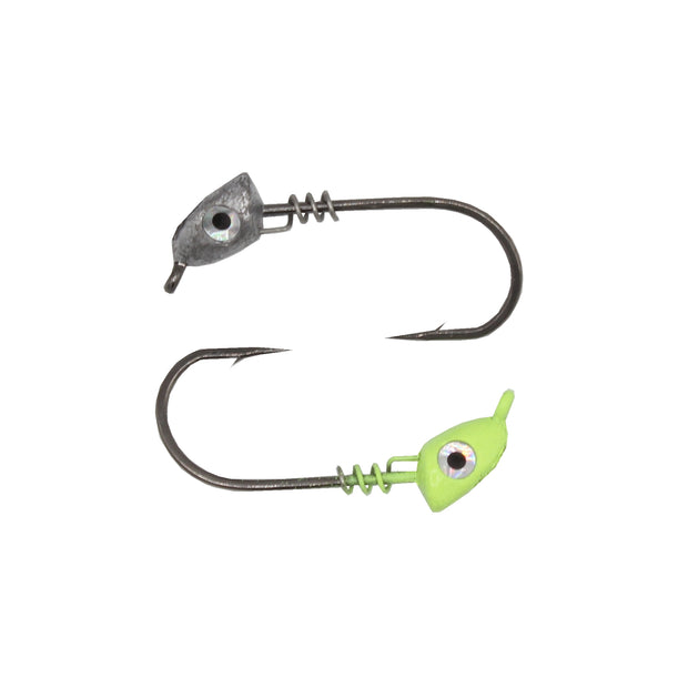 Knotty Hooker jigheads were designed knowing that gamefish key in on the “eyes” of the baitfish. Our products use 2D flat stick eyes in a multiple of color combinations. Constructed with 4/0 Gamakatsu 60 degree flat eye round bend jig hooks with easy screw on locks to keep your bait secure. The "Flat Eye" hooks give the jighead extra action as it comes through the water column and we feel reduces the chance of the eyes wedging into shell and rock. These details are what set our jigheads apart from the competition.