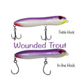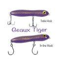 A uniquely designed topwater right at 4-inches in length providing outstanding castability. Each bait is custom painted and epoxied that creates a clean look along with long lasting durability. Two independent chambers provide both a deep knocking sound and higher pitched sound making it one of the loudest surface lures on the market.